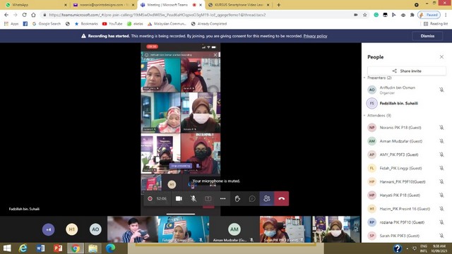 12 September 2021 | Aktiviti Terkini11 September 2021, Sabtu - Pengurusan Pusat Internet Komuniti (PIK) iaitu Sprintz Designs Sdn. Bhd. menganjurkan kursus secara atas talian bertajuk Kursus Videografi untuk staf Pusat Internet Komuniti (PIK) daripada Putrajaya dan Linggi. Kursus Videografi menggunakan telefon pintar telah dihadiri oleh 9 orang staf dari Pusat Internet Komuniti (PIK) Presint 9 Fasa 3, Presint 9 Fasa 10, Presint 16, Presint 18 dan Linggi.