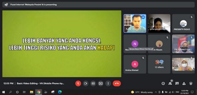 24 October 2021 | Aktiviti Terkini23 Oktober 2021, Sabtu – Pusat Internet Komuniti, PIK Putrajaya telah meneruskan modul keempat untuk sesi 1/2021 Giatmara Putrajaya. Modul Asas pengenalan videografi di kendalikan oleh En Hazim, Pengurus PIK Presint 16 dan Pn. Nur Dahiyah, Penolong Pengurus PIK Presint 16.
