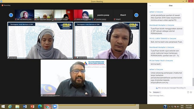 Sesi penerangan ini adalah secara atas talian melalui pihak SKMM dan pihak SSM sebagai tenaga pengajar. Staf-staf PIK Wilayah Persekutuan diberi penerangan berdasarkan topik-topik seperti berikut :