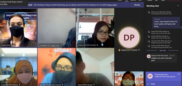 14 April 2022 | Aktiviti Terkini13 April 2022, Rabu – Pengurusan Pusat Ekonomi Digital (PEDi) iaitu Sprintz Designs Sdn. Bhd telah mengadakan Kursus secara atas talian bertajuk Kursus Memperkasa Komunikasi, Rangkaian dan Pembentangan untuk staf Pusat Ekonomi Digital (PEDI) daripada Putrajaya dan Linggi secara atas talian. Kursus Memperkasa Komunikasi, Rangkaian dan Pembentangan telah dihadiri oleh 9 staf pengurus dan penolong pengurus dari Pusat Ekonomi Digital (PEDI) Presint 9 Fasa 3, Presint 9 Fasa 10, Presint 16, Presint 18 dan Linggi.