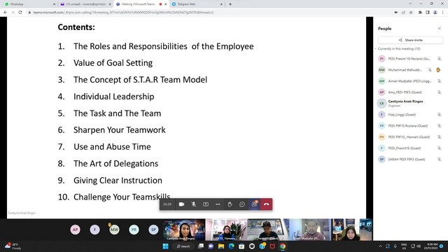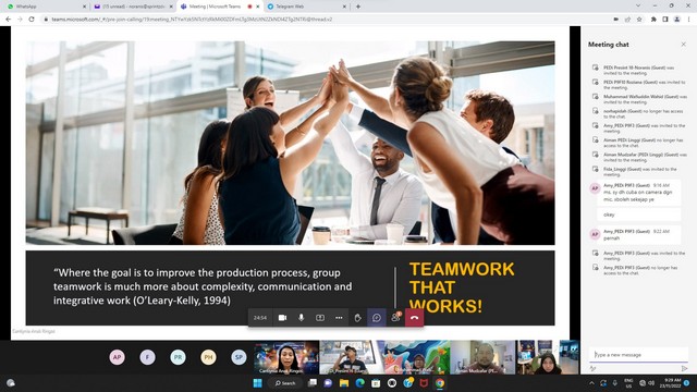 24 November 2022 | Aktiviti Terkini23 November 2022, Rabu – Pengurusan Pusat Ekonomi Digital (PEDi) iaitu Sprintz Designs Sdn. Bhd telah mengadakan latihan secara atas talian bertajuk ‘Teamwork That Works’ untuk staf Pusat Ekonomi Digital (PEDI) Putrajaya dan Linggi. Latihan ini telah dihadiri oleh 9 orang staf dari Pusat Ekonomi Digital (PEDI) Presint 9 Fasa 3, Presint 9 Fasa 10, Presint 16, Presint 18 dan Linggi.