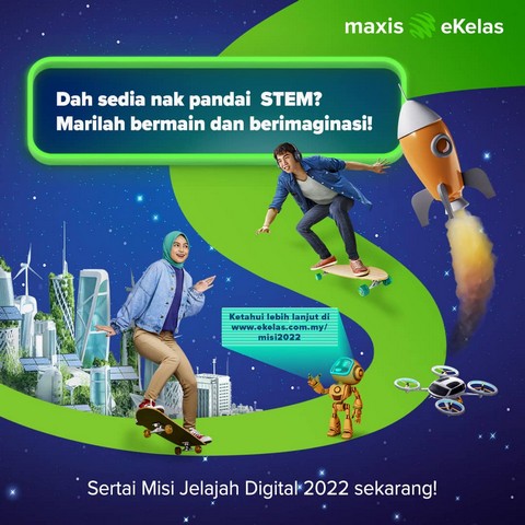 23 September 2022 | Aktiviti Terkini22 September 2022, Khamis – EKelas Maxis menganjurkan Misi Jelajah Digital bagi tahun 2022. Terbuka kepada semua pelajar eKelas yang berminat boleh menyertai misi ini dan akan memenangi hadiah menarik. Nak jadikan pembelajaran STEM lebih menyeronokkan? Kami ada program sepadan untuk anda! Sertai Maxis eKelas dan mulakan kembara pendidikan menyeronokkan menerusi Misi Jelajah Digital. Dengan eKelas, tingkatkan tahap kemahiran STEM anda, terokai dunia koding, menangi hadiah eksklusif dan banyak lagi. Daftar sekarang di www.ekelas.com.my/misi2022 dan mulakan perjalanan epik anda dan raih markah ekstra kokurikulum.