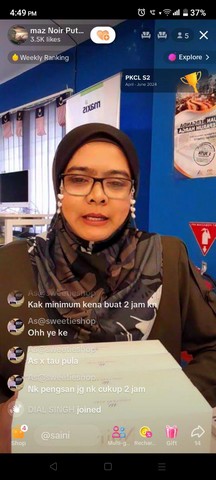 18 Jun 2023 | Aktiviti Terkini17 June 2023, Sabtu – PEDi telah memberi peluang kepada usahawan yang mahu berniaga secara langsung (LIVE) TikTok sambil mengambil peluang belajar cara menarik pelanggan dan menggunakan sistem yang ada dalam aplikasi TikTok tersebut. Sesi LIVE ini berlangsung bermula pada pukul 4.30 petang sehingga 6.00 petang. Dengan adanya sesi LIVE di TikTok ini bagi meningkatkan lagi keberanian diri dan mempromosikan produk yang dijual.