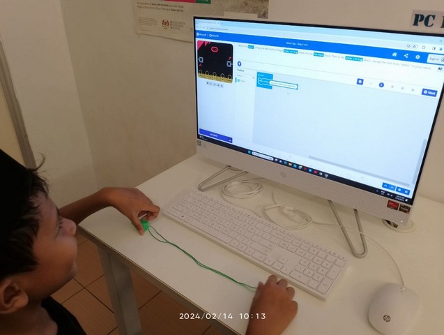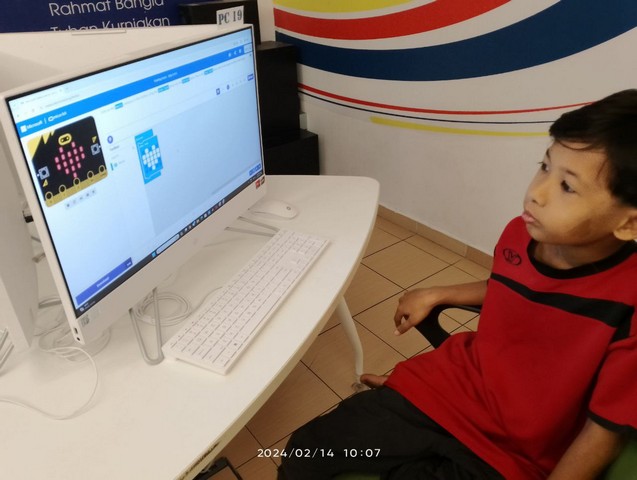 14 Februari 2024, Rabu – Sempena cuti sekolah, kelas STEM/IOT Microbit telah diadakan untuk memperkenalkan kepada para pelajar mengenai Microsoft MakeCode menggunakan laman web https://makecode.microbit.org. Microsoft MakeCode adalah sebuah IDE (Integrated Development Environment) dan software aplikasi programmer. Kelas dimulakan dengan pelajar diperkenalkan mengenai Microsoft MakeCode dan seterusnya mempelajari cara asas menggunakan block coding untuk menghasilkan projek Microbit seperti Flashing Heart, Smiley Button dan Name Tag.