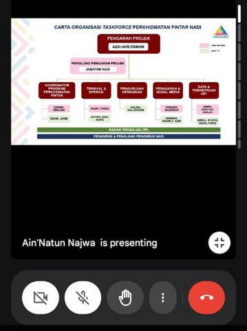 6 November 2024 | Aktiviti Terkini05 November 2024, Selasa – Taklimat Perkhidmatan Pintar NADI bagi Penolong Pengurus Wilayah Tengah telah diadakan pada Selasa yang lalu. Fokus utama taklimat adalah untuk memberikan penerangan tentang aktiviti dan peranan baru untuk petugas NADI. Taklimat diadakan selama 8 jam bermula 9.30 pagi sehingga 5.30 petang yang dilakukan secara atas talian menggunakan aplikasi Google Meet.