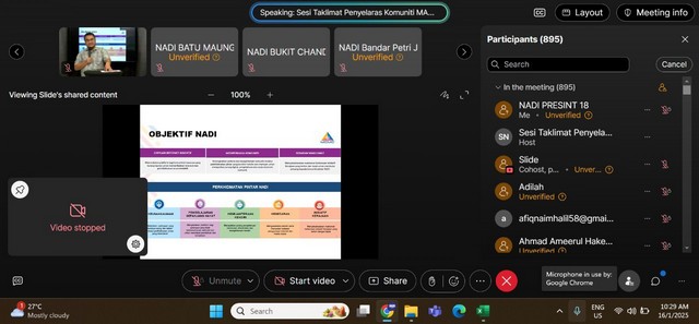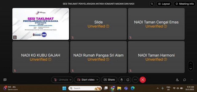 17 Januari 2025 | Aktiviti Terkini16 Januari 2025, Khamis – Taklimat mengenai cadangan kerjasama antara pihak Suruhanjaya Komunikasi dan Multimedia Malaysia (MCMC) menerusi rangkaian semua NADI di seluruh Malaysia dan Jabatan Penerangan Malaysia (JAPEN) telah diadakan secara dalam talian menggunakan Webex kepada petugas NADI seluruh Malaysia.