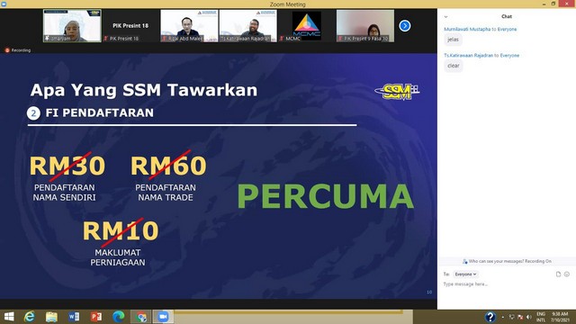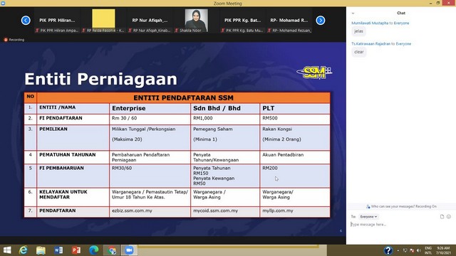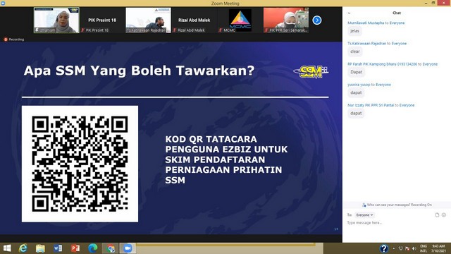 8 October 2021 | Aktiviti Terkini7 Oktober 2021, Khamis – Seramai 77 orang staf Pusat Internet Komuniti (PIK) Wilayah Persekutuan Kuala Lumpur, Labuan dan Putrajaya telah menyertai Sesi Penerangan Skim Pendaftaran Perniagaan Prihatin (SPPP) oleh SSM bersama PIK di Wilayah Persekutuan. Program ini merupakan kerjasama Suruhanjaya Komunikasi dan Multimedia Malaysia (SKMM) dengan pihak Suruhanjaya Syarikat Malaysia (SSM) yang menawarkan Skim Pendaftaran Perniagaan Prihatin (SPPP) untuk golongan B40 dan Pelajar Institut Pengajian Tinggi (IPT) Malaysia.
