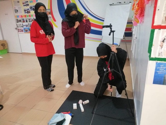 Seterusnya, pelajar Giatmara di beri tugasan untuk mengambil gambar menggunakan teknik Flatlay & Mini Studio dan mengedit menggunakan aplikasi Canva. Pelajar juga membawa produk masing-masing untuk digunapakai dalam modul kali ini.