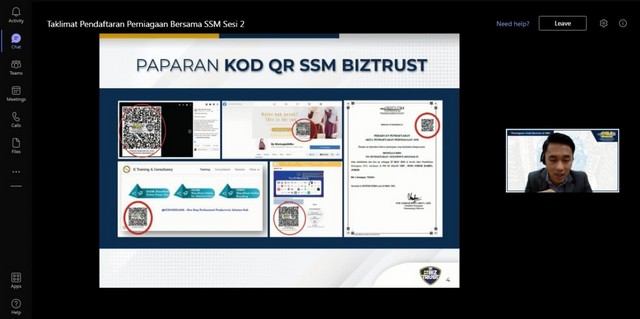 Sesi webinar bermula pada jam 2.30 petang hingga 3.30 petang. Sesi webinar ini untuk memudahkan usahawan PEDi untuk mendapatkan bantuan dalam segala urusan berkaitan SSM seperti pendaftaran perniagaan, penambahan jenis perniagaan, pembaharuan lesen perniagaan dan penamatan lesen perniagaan yang disediakan didalam laman web SSM di PEDi terdekat
