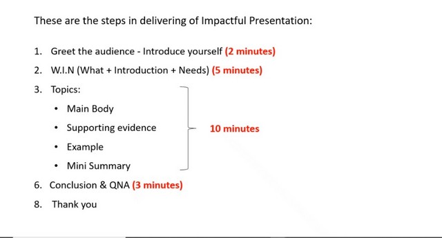 5. Menyampaikan pembentangan yang memberi impak yang tinggi yang menepati objektif dan membawa hasil.