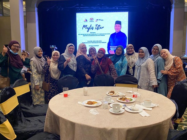 20 April 2022 | Aktiviti Terkini19 April 2022, Selasa – Staff PEDi Putrajaya telah dijemput hadir ke Majlis Iftar bersama Pengerusi Suruhanjaya Komunikasi dan Multimedia Malaysia (MCMC). Staff PEDi Presint 9 Fasa 3, PEDi Presint 16 dan PEDi Presint 18 merupakan wakil daripada PEDi Putrajaya yang telah hadir ke majlis berkenaan. Majlis Iftar ini telah diadakan di Grand Ballroom, Sunway Putra Hotel, Kuala Lumpur. Majlis bermula dari jam 5.30 petang hingga 8.30 malam. Majlis turut dihadiri oleh staff PEDi dari seluruh Wilayah Persekutuan Kuala Lumpur dan Putrajaya. Selain itu, pihak MCMC CRO juga turut menyertai majlis iftar ini.