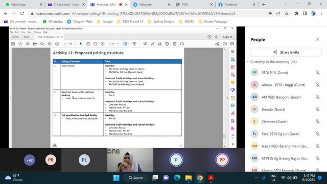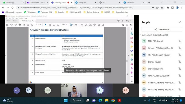 Taklimat diadakan secara atas talian dengan menggunakan aplikasi Ms Team, dan berlangsung selama satu jam bermula dari 3:00 petang sehinggan 4:00 petang.