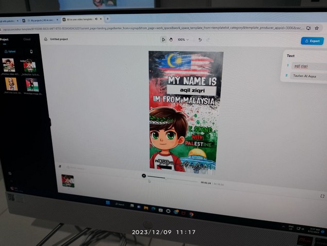 Seterusnya kelas ICT iaitu menyunting video menggunakan laman web CapCut bertajuk ‘We Stand with Palestine’. Pelajar yang menyertai kelas ini dapat mempelajari asas cara untuk mencipta video dengan menggunakan laman web CapCut. Kelas diadakan bermula jam 10.30 pagi hingga 12.30 tengahari. Seramai 5 orang pelajar sekolah yang menyertai kelas pada kali ini.