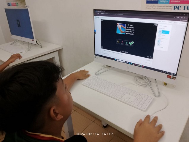 Seterusnya kelas diteruskan dengan aktiviti e-learning menggunakan website Wordwall bertajuk Vocabulary. Kelas STEM/IOT diadakan bermula jam 10.00 pagi hingga 11.00 pagi dan kelas e-learning diadakan pada jam 2.00 petang hingga 3.00 petang.