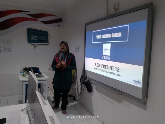 Program bermula pada pukul 3.00 petang dengan sesi pembentangan daripada Pengurus PEDi iaitu Puan Haryati berkenaan pengenalan PEDi, program yang telah dijalankan dan usahawan yang aktif di PEDi Presint 18. Seterusnya adalah penerangan daripada wakil Ant International mengenai pengenalan syarikat dan peluang usahawan yang boleh digunakan dalam jualan secara atas talian di Marketplace.