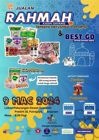 10 Mac 2024 | Aktiviti Terkini09 Mac 2024, Sabtu – Program Jualan Rahmah dan Best Go@ Surau telah diadakan anjuran MPP Sub Zon 1 dengan kerjasama KRT18R13, KKM, AADK, Surau Al-Kauthar dan Pusat Sebaran Maklumat Nasional, NaDi Presint 18. Tujuan utama program diadakan untuk membantu penduduk sekitar dengan persediaan persekolahan anak-anak serta menjelang bulan Ramadan iaitu jualan rahmah dengan harga barangan yang murah. Selain itu, untuk menjalinkan ukhwah bersama komuniti dengan menyertai aktiviti gotong royong surau.