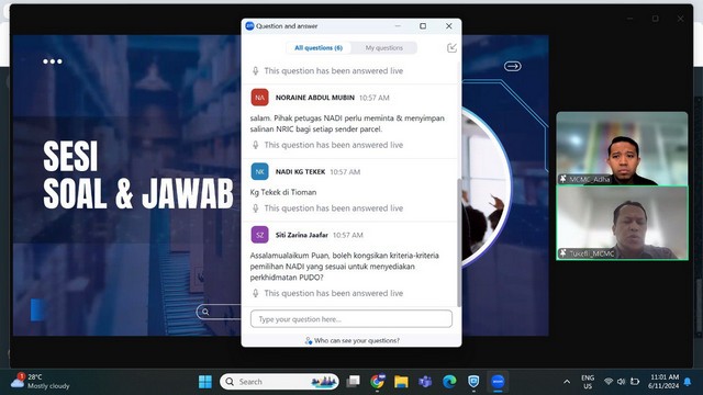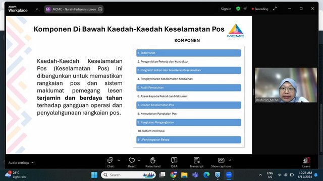 7 November 2024 | Aktiviti Terkini06 November 2024, Rabu – Bahagian Perancangan Perkhidmatan Pos (PSPD) MCMC telah mengadakan satu sesi libat urus kepada semua petugas-petugas Pusat Sebaran Maklumat Nasional (NADI) berkenaan Kaedah-kaedah Keselamatan Pos yang mana keperluan keselamatan yang terdapat di bawah kaedah-kaedah ini juga turut menyentuh tentang penyediaan perkhidmatan PUDO. Sesi libat urus ini adalah penting bagi mendapatkan pandangan, input dan maklumbalas daripada petugas-petugas sebelum pelaksanaan Kaedah-Kaedah Keselamatan Pos.