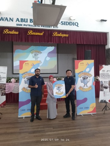 10 Julai 2025 | Aktiviti Terkini9 Julai 2025, Rabu – Pihak Jabatan Penerangan Malaysia (JAPEN) dengan kerjasama Kelab Malaysiaku telah menganjurkan Program Kempen Internet Selamat bertemakan Keselamatan Dalam Talian dan Buli Siber yang telah diadakan di SMK Presint 5(1). Program ini menampilkan wakil dari NADI Putrajaya sebagai penceramah utama dan berlangsung dari jam 2.30 petang hingga 6.00 petang. Seramai 69 orang pelajar serta 7 orang guru telah menghadiri program ini.